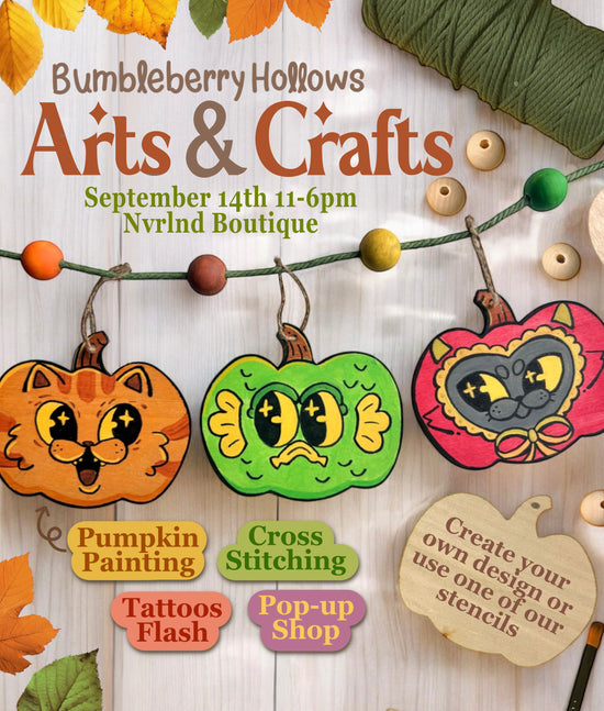 It’s time for Arts and Crafts with Bumbleberry Hollows! Join us to create a charming fall pumpkin garland—a perfect seasonal decoration to bring cozy autumn vibes into your home.